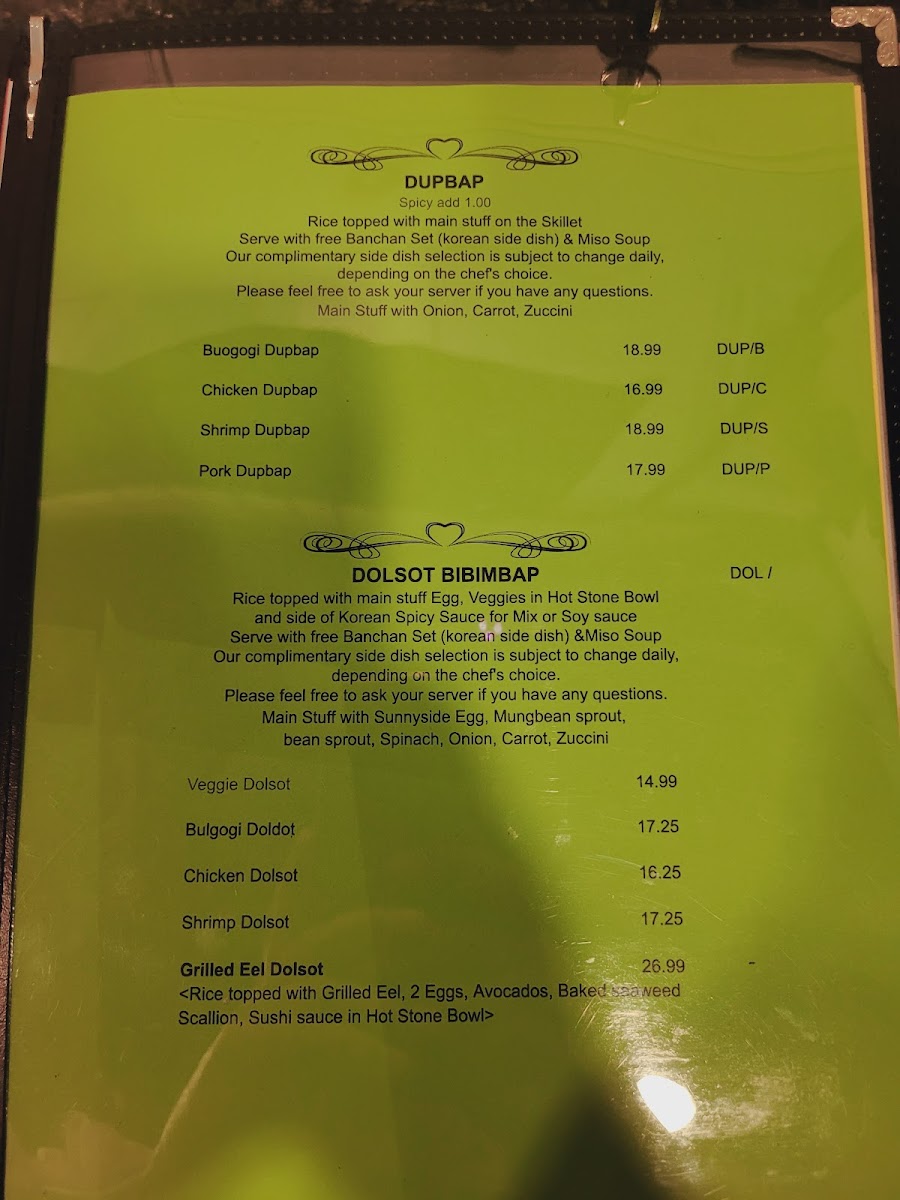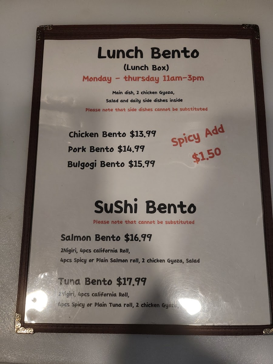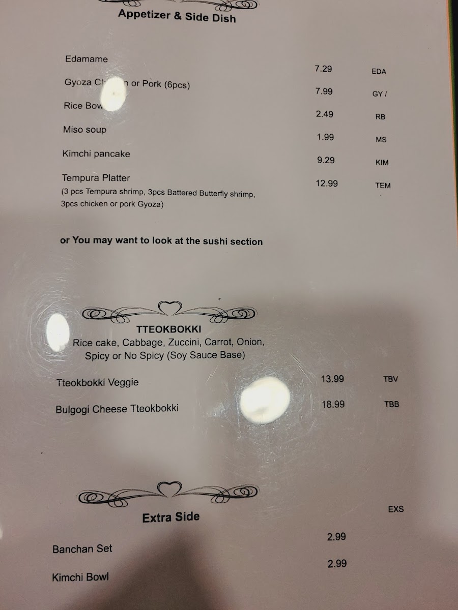 Oya Sushi and Korean Grill Menu
